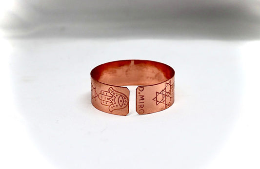 צמיד נחושת מרוקע עם חמסה ומגני דוד
