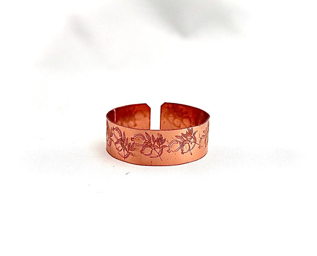 צמיד נחושת מרוקע עם רימונים